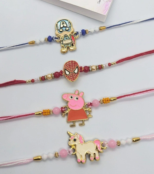 Peekalo Kids Designer Rakhi (Set of 4) + Roli Chawal Card