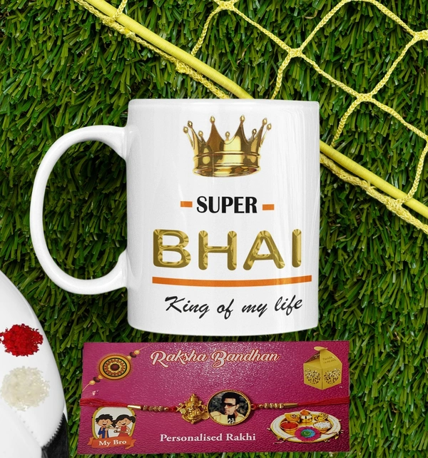 Peekalo Photo Rakhi with BHAI Printed Ceramic Mug (Set of 2)